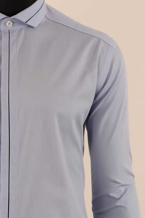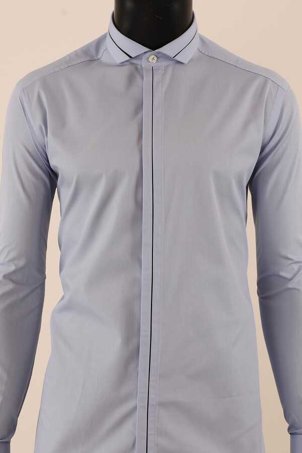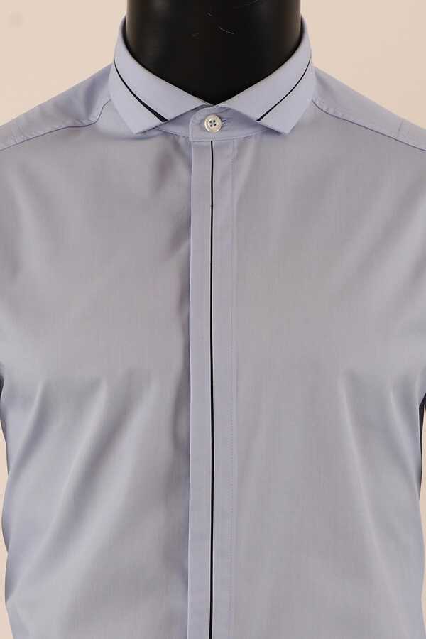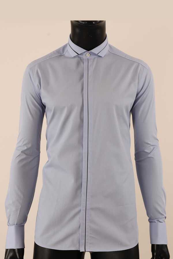 Uzun Kol Slim Fit Damatlık Mavi Gömlek